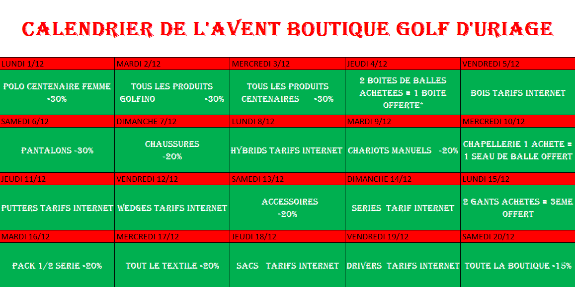 VENEZ CHAQUE JOUR PROFITER DE NOUVELLES OFFRES BOUTIQUES AVEC NOTRE  CALENDRIER DE L' AVENT.