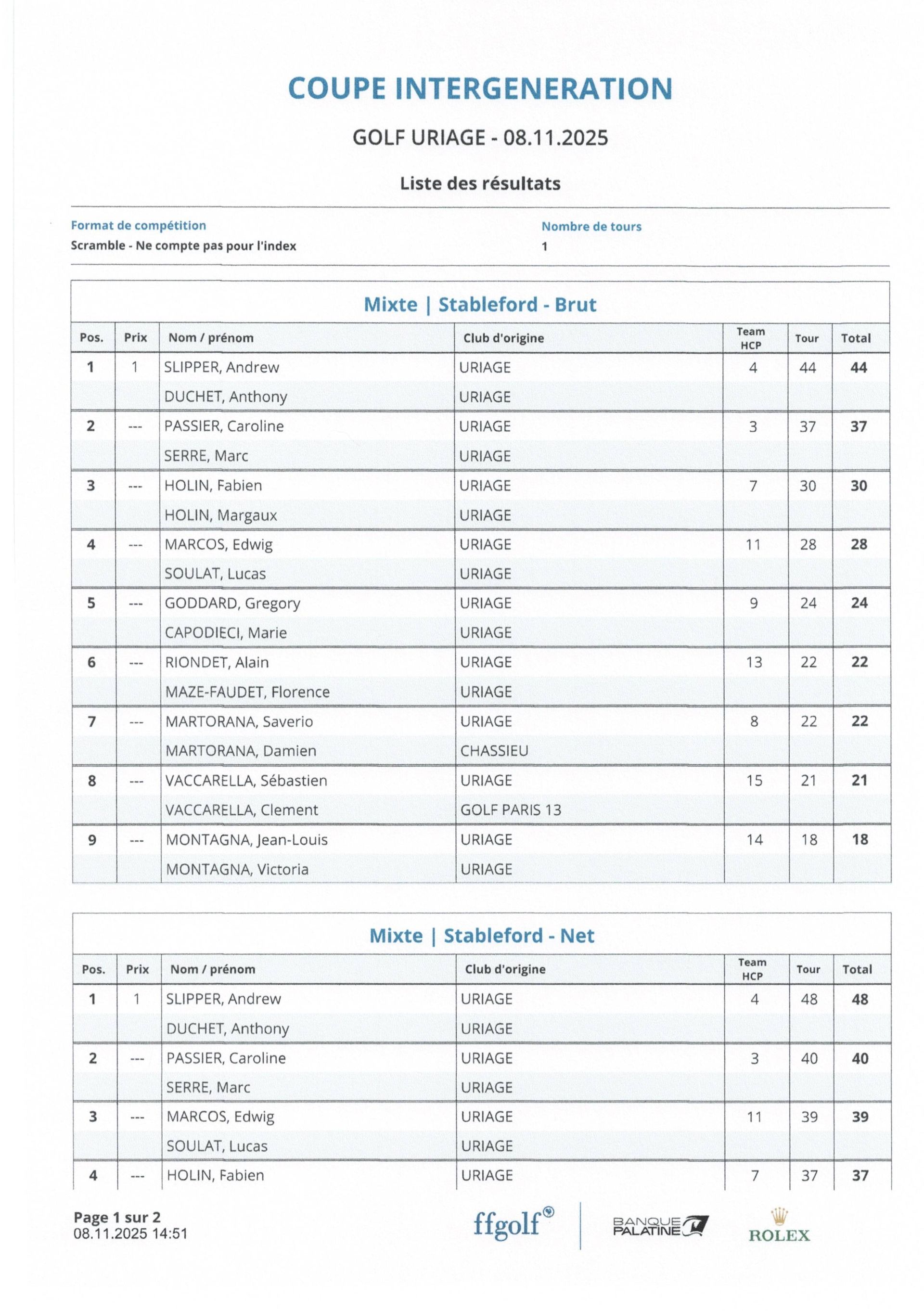 DÉPART HIVER ET GREEN D'HIVER (selon météo) OBLIGATOIRES A PARTIR DU LUNDI 24 NOVEMBRE 2025. MERCI POUR VOTRE COMPRÉHENSION.