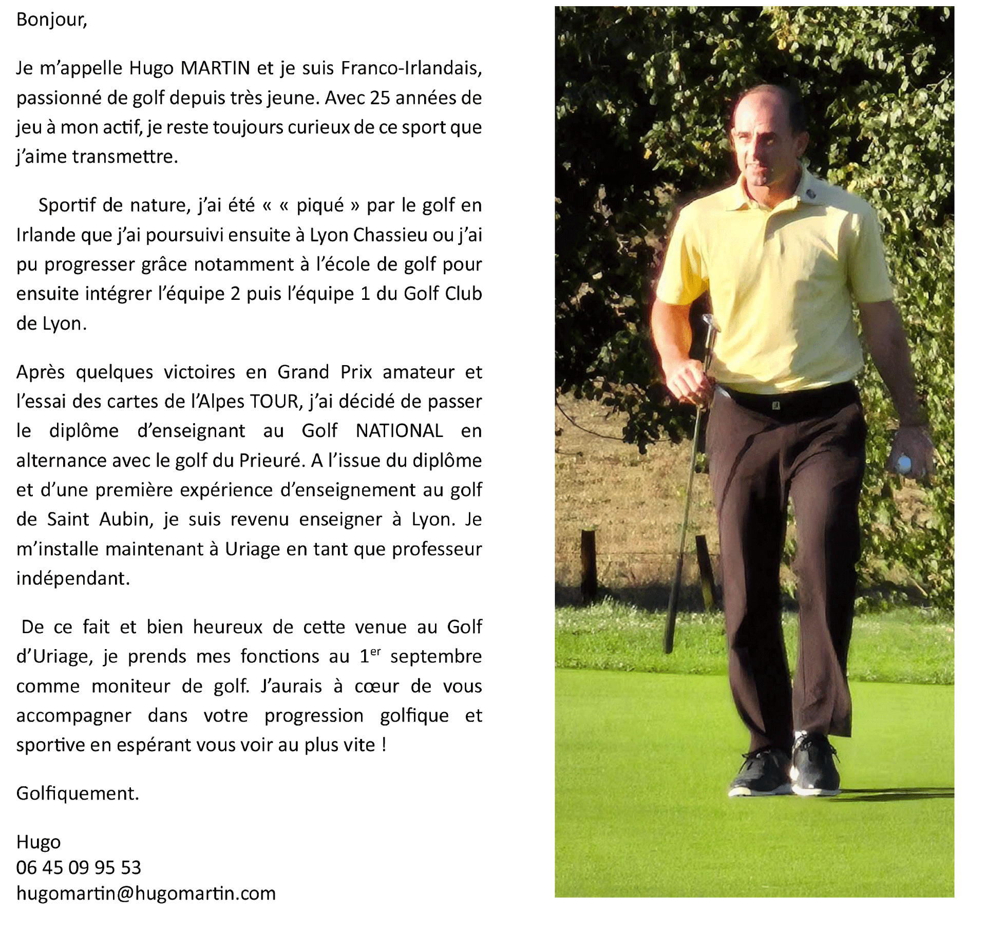 A compter du 1er septembre 2025, l'enseignement du golf est assuré par un enseignant diplômé d'Etat indépendant.