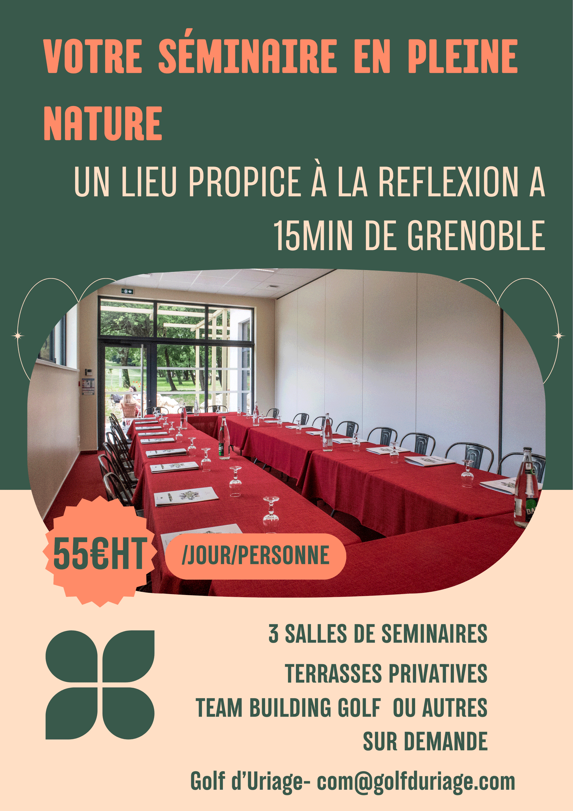 - Location de salle, lumineuse et parfaitement équipée.